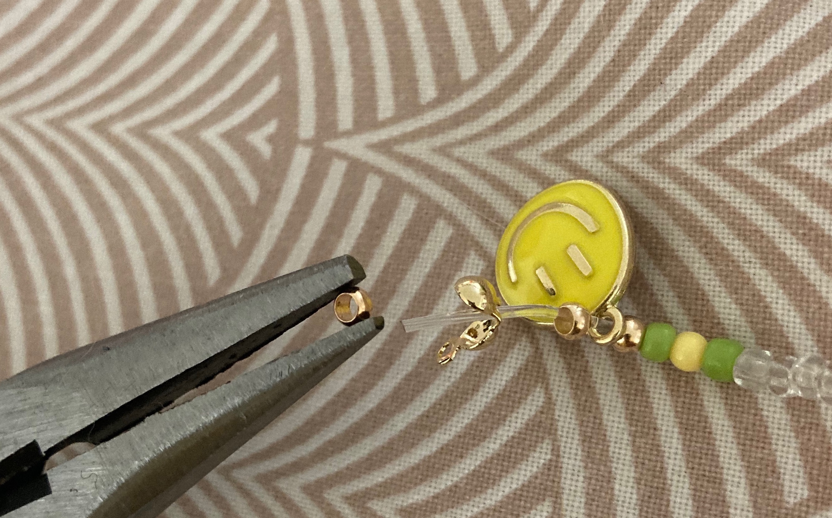 양 끝에 귀여운 스마일 펜던트를 넣고 계속 계속