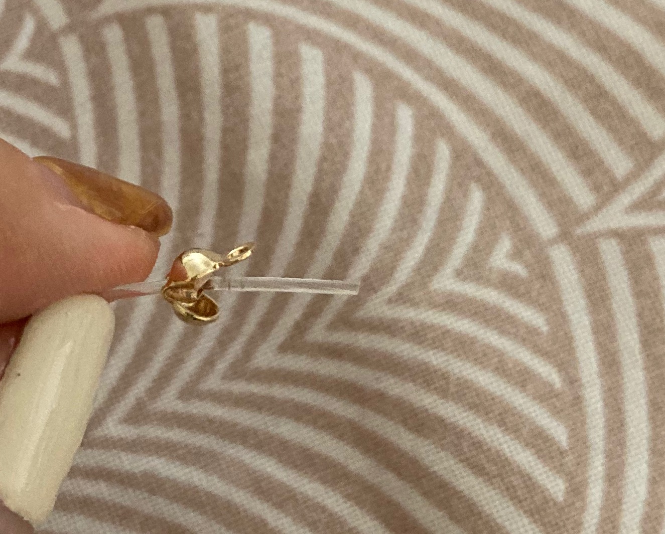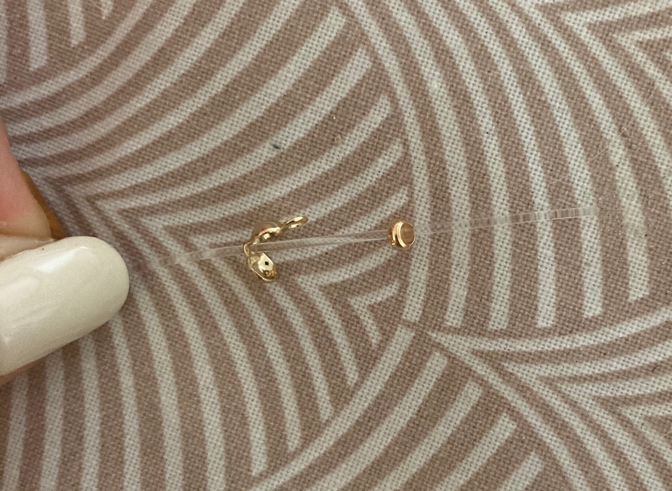 2️⃣ 누름볼을 집게로 꾹 눌러서 줄 끝이 고정되도록